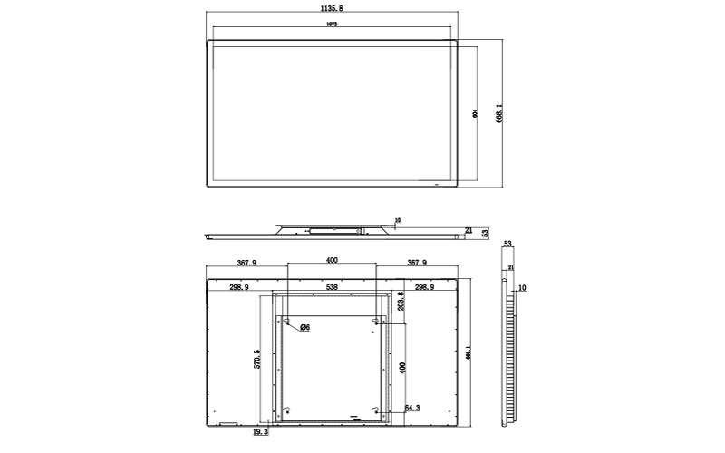 顯示區域 | 1073×604mm | 可視角度 | 89/89/89/89 (Typ.)(CR≥10) | ||